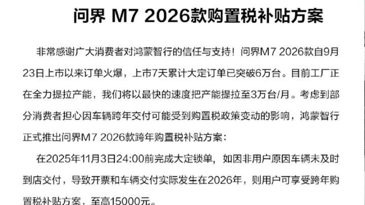 目前,理想、问界、极氪、智己等多家车企公开表示,会为年内无法提车的用户兜底购置税。不过,算账的不光是车企,消费者也有自己的盘算。“假如我买一辆最近两个月出的新车,20万左右,今年买可以少交8000多的购置税。如果我明年买,按照车企一年一改款的节奏,过几个月,这款车就会有各种优惠和促销,大概率能抹平这个购置税的差价。而且明年购置税涨了,车价又不涨,肯定会有更多配置更高的新车。”利丰得出结论,背着抱着一边沉,里外里一算,消费者其实没有什么便宜可占。“跟买手机一样,无非是早买早享受,就这么简单。”